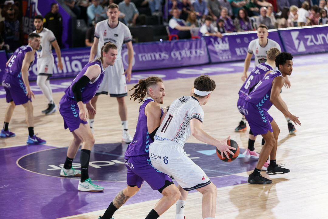 Porque la intensidad con la que arrancó el Obra, necesitado a más no poder de una victoria, fue muy alta. O el juego de los morados demasiado manso. Sin garra. Los rebotes se lo levaban todos Pustovyi y compañía. Aunque las prisas de los gallegos hacían mella. Tanto que no anotaron hasta el pasado un minuto y medio de juego.