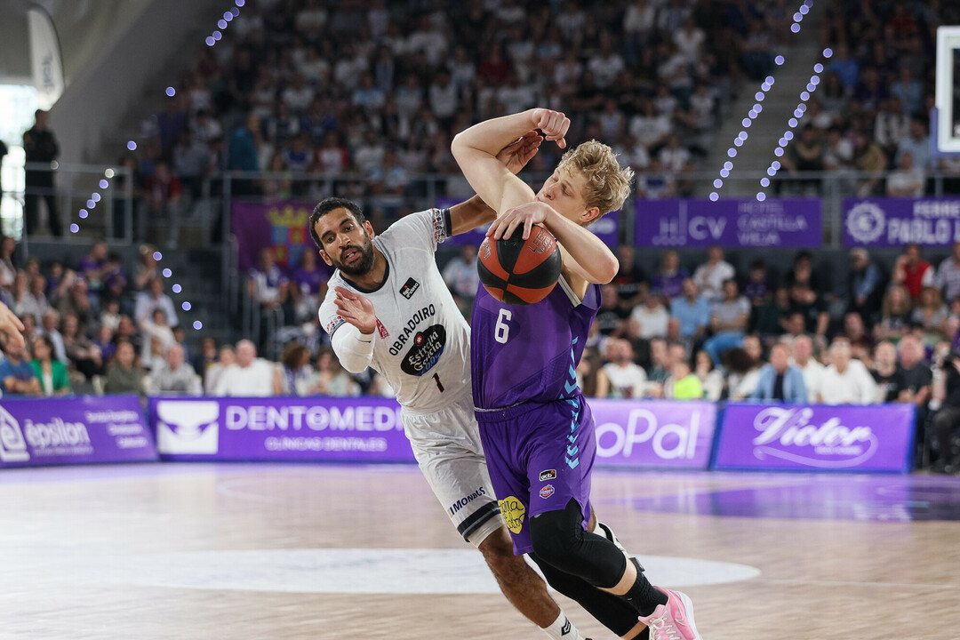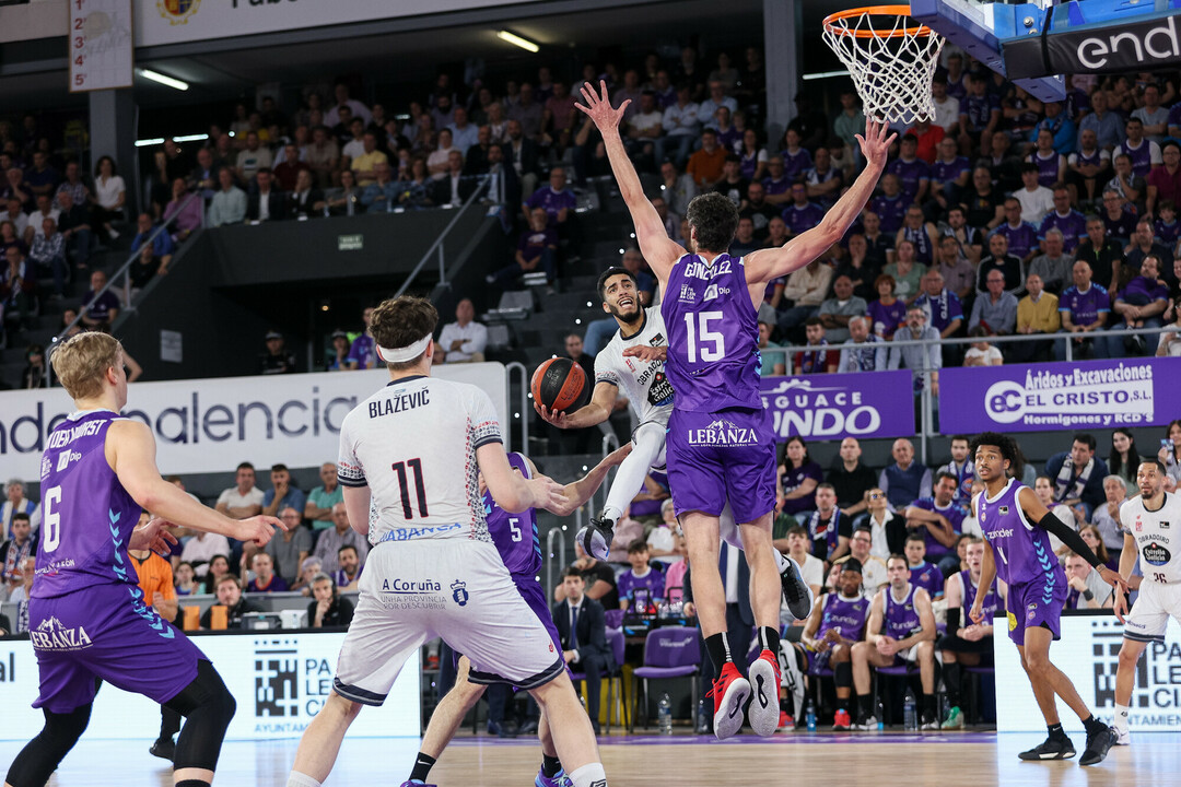Con tres arriba para los morados, los árbitros, tras mucha revisión del Instant Repaly, le pitaron técnica a Van der Vuurst, que acababa de recibir una falta personal del Blazevic. Pero los palentinos volvieron a confiar en ellos mismos, a jugar con velocidad, a poner, si no técnica sí orgullo, como Chema que fue coreado varias veces por la grada. En cambio, al Obradoiro le embargaban las dudas.