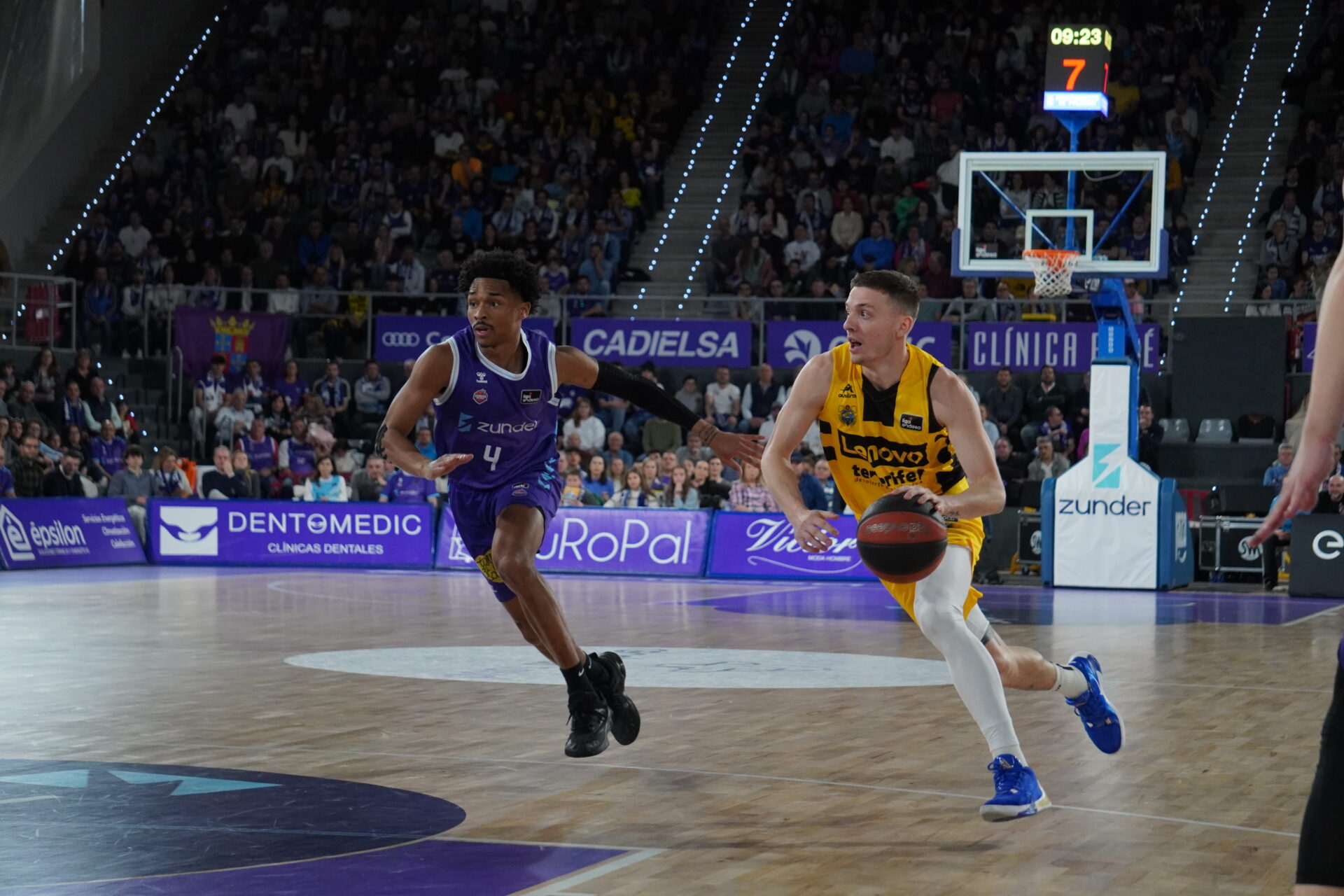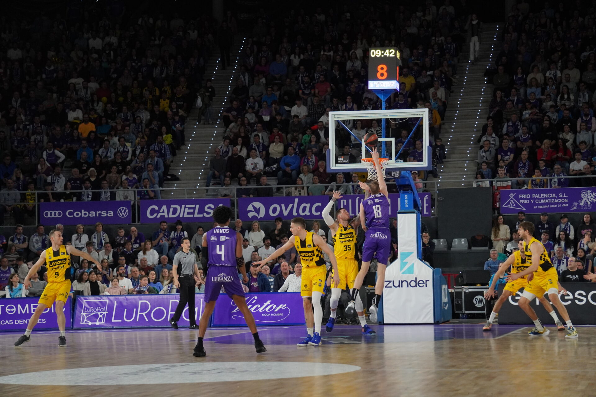 Lo intentaba con todo el Zunder en ataque. De tres, agua, por dentro… murallas canarias que curiosamente no hacían falta.  Solo Cook parecía hacer la faltas en el Tenerife, y con tres se tuvo que ir al banco consumidos 18 minutos de juego. 28-38 tras tiros libres de Pasecnicks, que fue el encargado de dejar con una canasta tras asistencia de Frankamp la diferencia en ‘solo’ 8 puntos. Razón para que Txus Vidorreta pidiera su segundo tiempo muerto del partido. No le gustaba cómo estaba jugando, especialmente en ataque, el cuadro canario ante una defensa palentina que le dejó en solo 11 puntos y un parcial de 15-11.